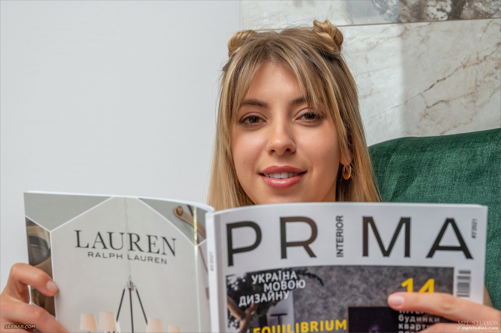 Красивая девушка позирует в кресле голышом
