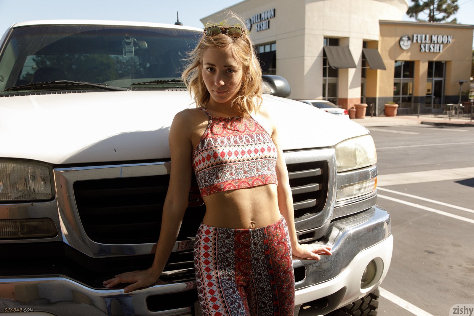 Описание: Нарядившись в красочный костюм, молодая девица со спортивным и телом и красивой внешностью начинает прогуливаться по улице и эротично позировать. В некоторые моменты молоденькая стройняшка показывала подкаченный пресс и сочную попочку в трусиках, параллельно сжимая булки руками, для этого стягивая штанишки и поднимая майку.