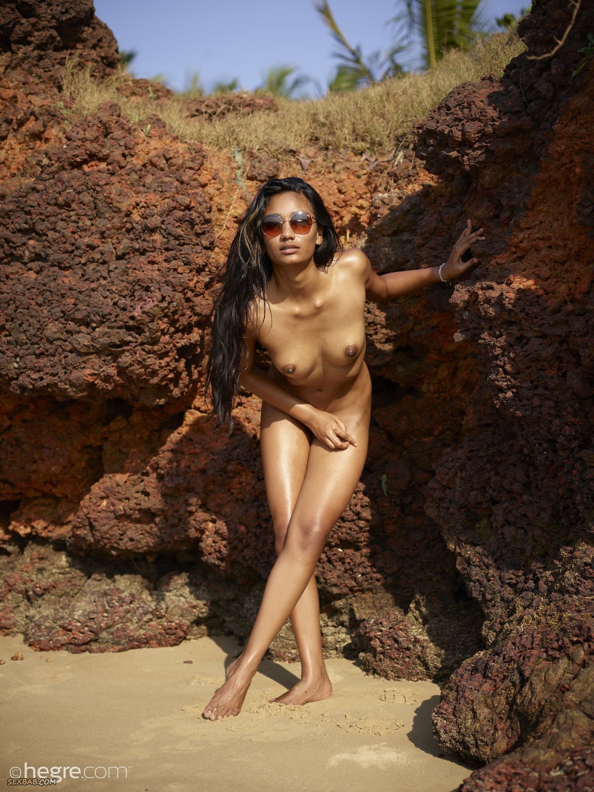 Описание: Выбрав самое укромное и тихое место на пляже, смуглая девица в очках начинает эротично позировать и показывать сексуальное голое тело с натуральными сиськами и возбужденными сосочками. А в тот момент когда стройная девушка улеглась на песок, она сразу же раздвинула промежность и засветила бритую письку с немного грязными половыми губками.